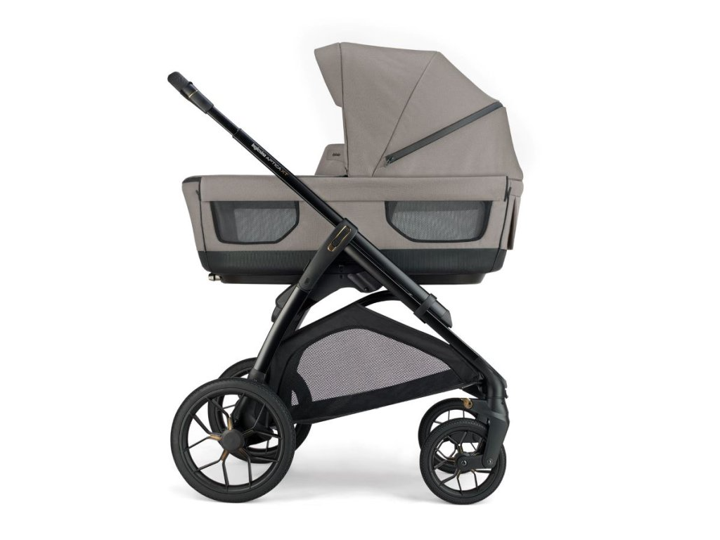 Kombinovaný kočík Aptica XT 4v1 Recline sa skladá z: priestrannej hlbokej vaničky XXL s 5-timi okienkami, matraca Welcome PadTM, stojana Stand UpTM, autosedačky Darwin Recline Evo R129, športovej sedačky All season so strieškou, košíka, držiaka pohárika a nového odľahčeného adaptívneho podvozku Aptica XT.