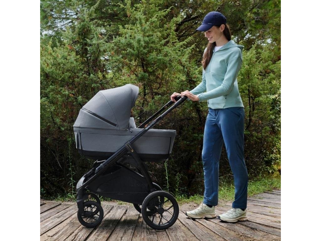 Kombinovaný kočík Aptica XT 4v1 Recline sa skladá z: priestrannej hlbokej vaničky XXL s 5-timi okienkami, matraca, Welcome PadTM, stojana Stand UpTM, autosedačky Darwin Recline R129, športové sedačky All season s búdkou, nánožníka, košíka, držiaka pohárika a nového odľahčeného adaptívneho podvozku Aptica XT.