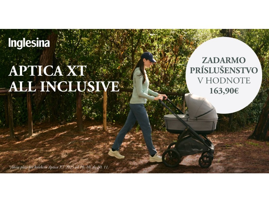 Kombinovaný kočík Aptica XT 2025 sa skladá z: priestrannej hlbokej vaničky XXL s 5-timi okienkami, matraca Welcome PadTM, stojana Stand UpTM, športovej sedačky All Season s búdkou a nánožníkom, košíka, držiaka pohárika a nového odľahčeného adaptívneho podvozku Aptica XT.