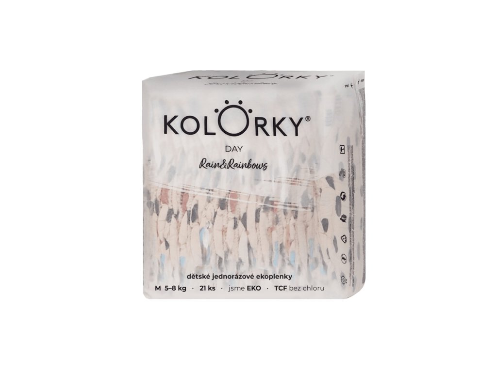 KOLORKY DAY Plienky jednorazové eko, dážď&dúhy M (5-8 kg) 21 ks
