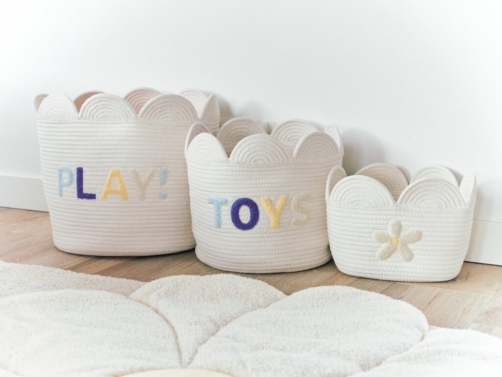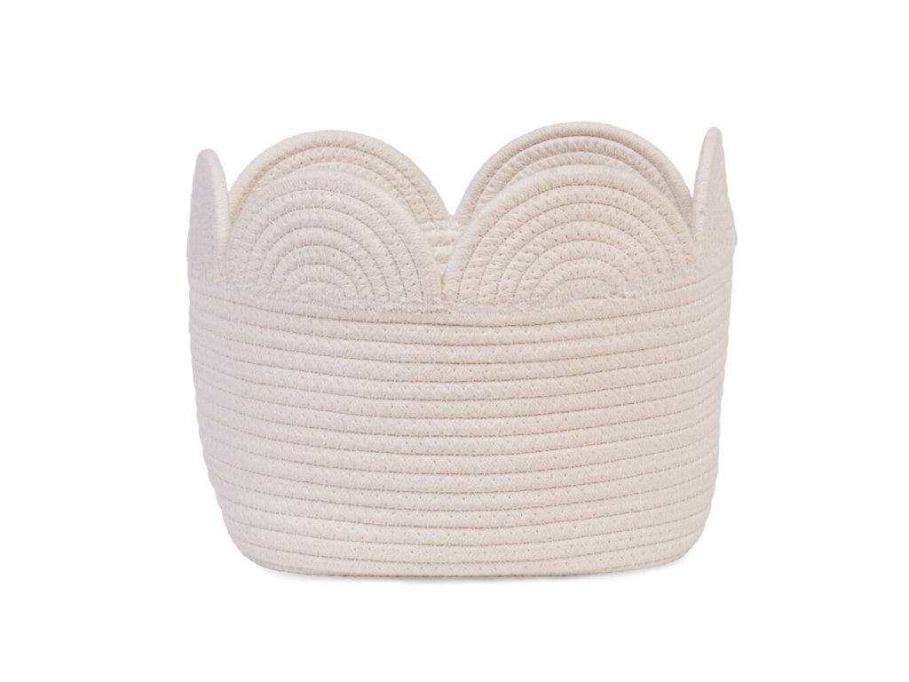 Krásny úložný košík je vhodný na ukladanie drobných hračiek, oblečenia a pod. Košík z príjemného textilného materiálu sa stane nežnou dekoráciou v detskej izbe.