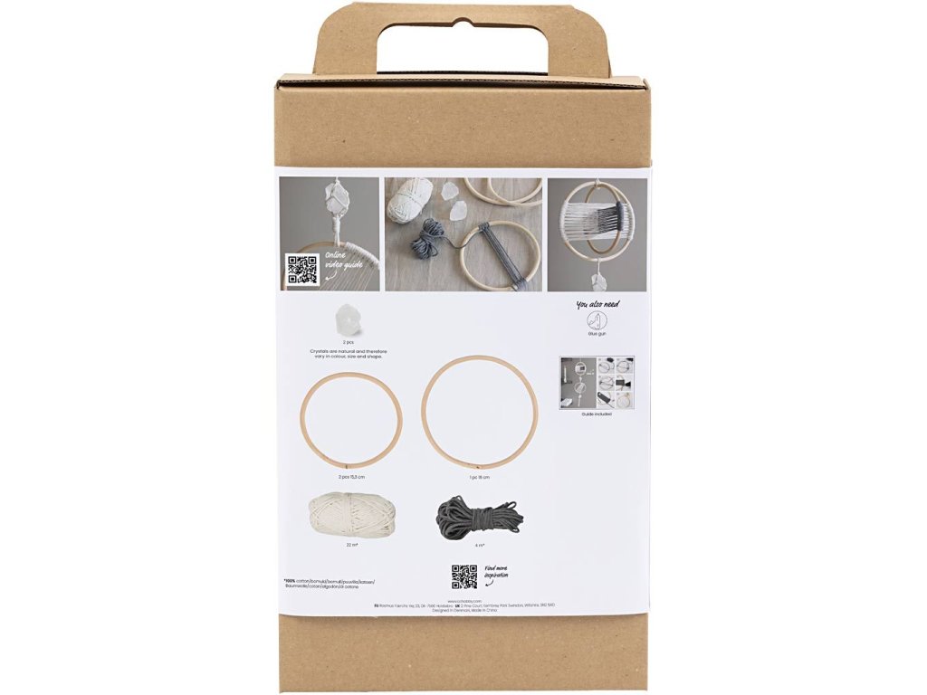 Vytvorte si makramé technikou elegantnú závesnú dekoráciu, ktorá bude nielen krásnym doplnkom do interiéru, ale aj nositeľom pozitívnej energie. Táto sada obsahuje prírodné krištáľe, ktoré v sebe nesú symboliku sily, jasnosti a pokoja.