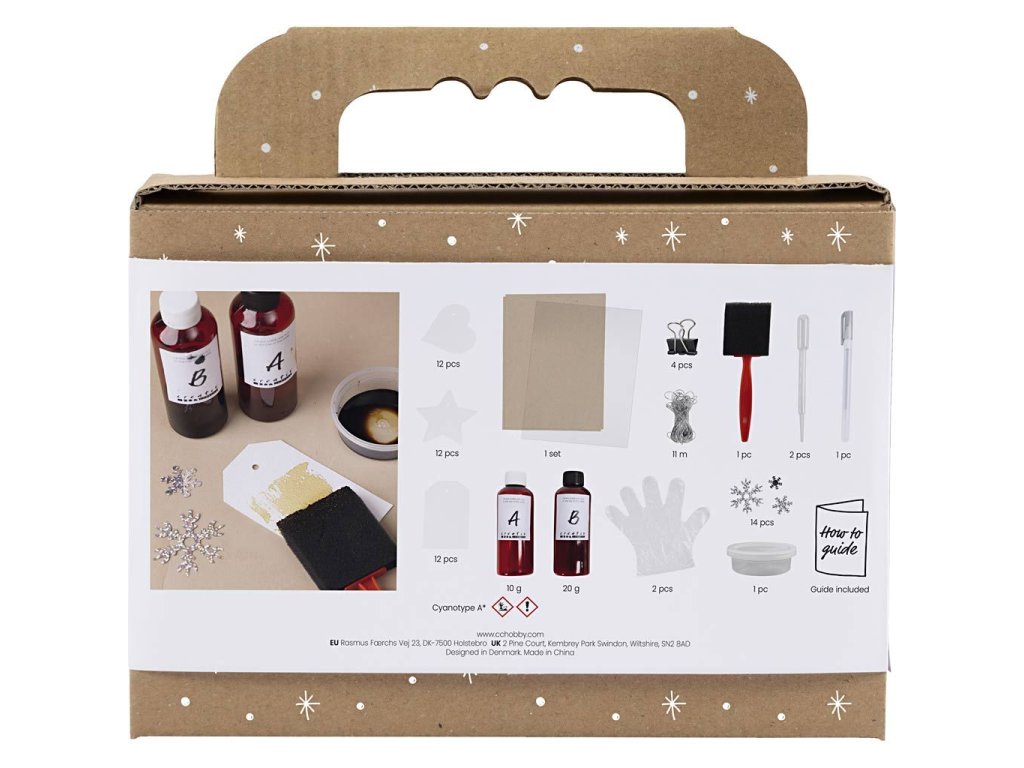 Elegantná kreatívna sada pre dospelých, ktorá prináša kúzlo výtvarnej techniky kyanotypie priamo k vášmu vianočnému baleniu darčekov. Vytvorte si vlastné originálne visačky v odtieňoch modrej - jedinečné, štýlové a osobné.