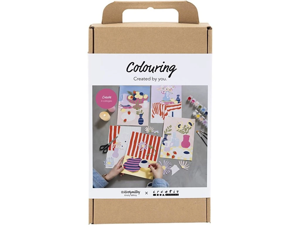 Originálna kreatívna sada na maľovanie a tvorbu koláží s kvetinovými motívmi. Táto sada vám umožní vytvoriť štyri jedinečné obrazy na plátne – kombináciou maľovaného pozadia a vystrihaných motívov vzniknú štýlové koláže, ktoré krásne oživia interiér. Súprava je vytvorená v spolupráci s Kirsty Milloy a obsahuje všetko potrebné vrátane návodu. Projekt je jednoduchý a vhodný aj pre začiatočníkov: namaľujete pozadie, vyfarbíte motívy, vystrihnete ich a poskladáte do finálnej koláže podľa vlastného vkusu.