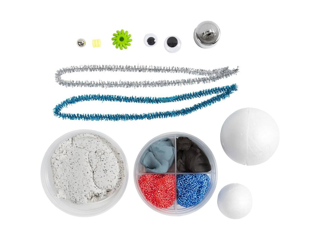 Originální kreativní sada pro vytvoření postavičky robota. Zábavná sada dětem umožní kombinovat různé druhy modelovacích hmot, korálků a drátků do originální pohyblivé postavičky robota. Ideální projekt pro malé techniky a nadšence do robotiky.