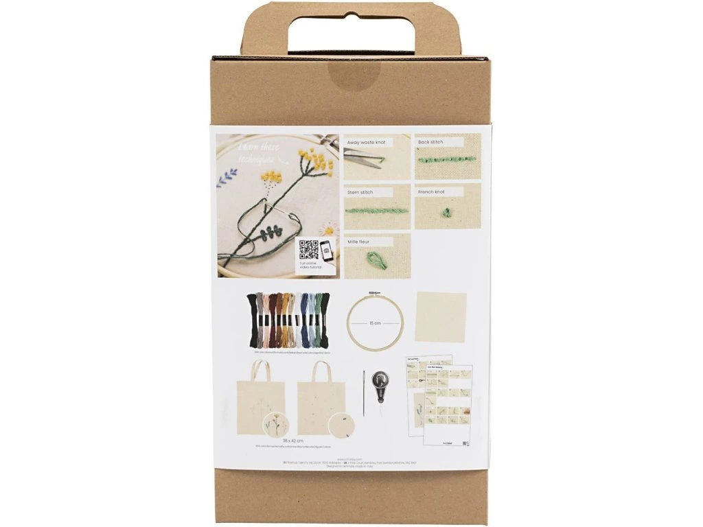 Originálna kreatívna súprava pre prvé vyšívanie. Skvelá štartovacia sada pre všetkých, ktorí sa chcú naučiť vyšívať a zároveň si rovno vytvoriť dve krásne látkové tašky s výšivkou. Sada obsahuje všetok materiál aj návod a navyše online výukovú podporu: po naskenovaní QR kódu sa dostanete do sveta videí, ktoré vás krok za krokom prevedú základnými prvkami, technikami aj tým, ako výšivku správne začať a dokončiť. Výsledkom sú dve praktické tašky s vlastnoručne vyšitou dekoráciou a zároveň pevný základ, na ktorom môžete stavať pri ďalších projektoch.