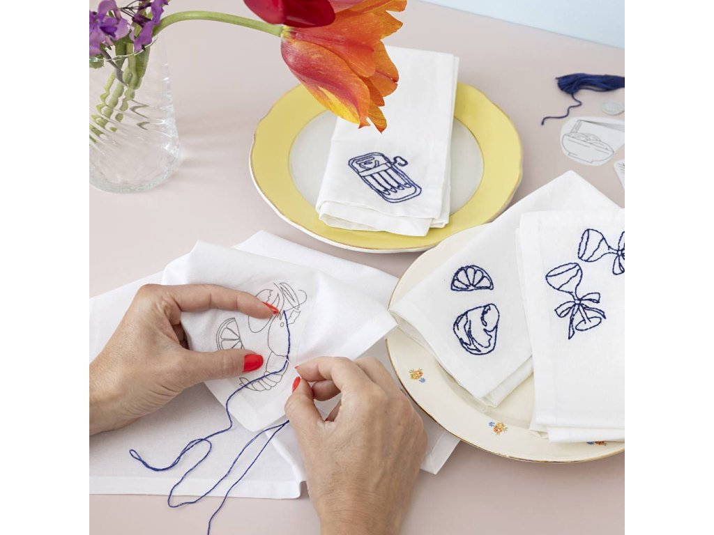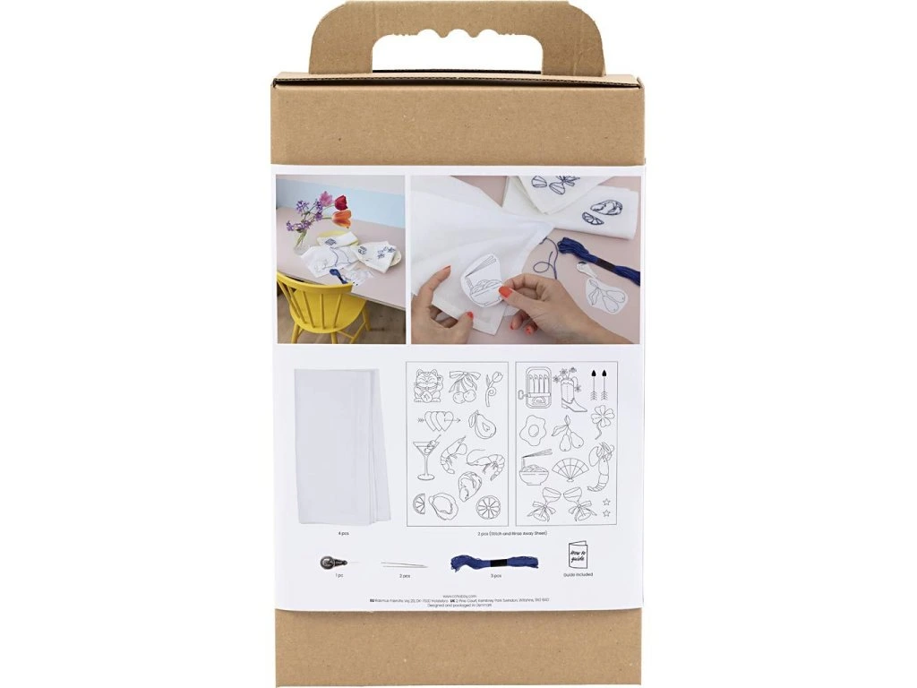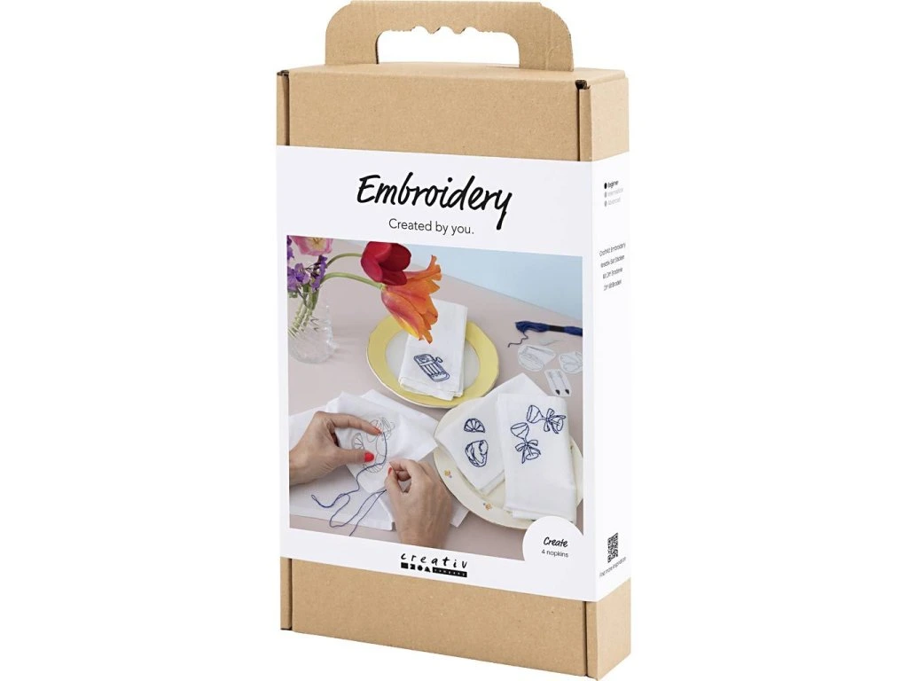 Originálna kreatívna sada na vyšívanie textilných obrúskov. Táto sada vám umožní vyšiť si vlastné látkové obrúsky a vytvoriť osobité prestieranie s elegantným detailom. V balení nájdete všetko potrebné pre štyri obrúsky vrátane návodu. Práca je jednoduchšia, než sa zdá: vyšívacie samolepky umiestnite na obrúsok, vyšijete motív podľa šablóny a po dokončení sa šablóny vo vode rozpustia. Výsledkom sú štyri jedinečné obrúsky, ktoré dodajú stolovaniu osobný štýl a urobia dojem na hostí.