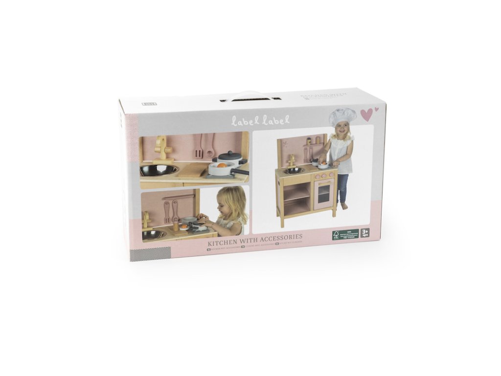 Posaďte sa k stolu a vychutnajte si kuchárske umenie vášho najmenšieho špičkového šéfkuchára! Váš malý kuchár vám veľmi rád pripraví napríklad vajíčka v tejto trendy kuchynke v štýle značky Label Label. Kuchynka je vyrobená z vysokokvalitného dreva s certifikátom FSC v kombinácii s farbami na vodnej báze, ktorá je úplne vhodná pre deti.