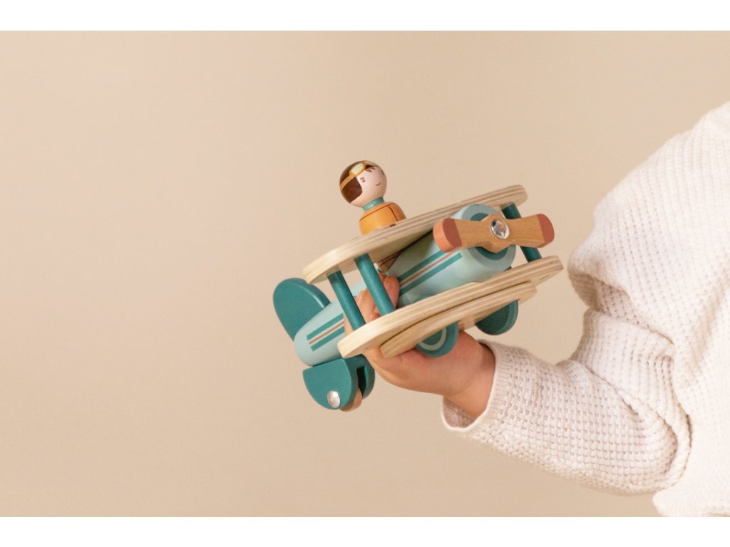Ste pripravení vzlietnuť? Stačí naštartovať motor, roztočiť vrtuľu a vydať sa za dobrodužstvom v oblakoch! Lietadlo s vyberateľným pilotom a otáčacou vrtuľou aj kolieskami poskytne vášmu dieťaťu hodiny kreatívnej zábavy. Figúrka pilota je kompatibilná s domčekom pre bábiky a ďalšími drevenými hračkami Little Dutch.