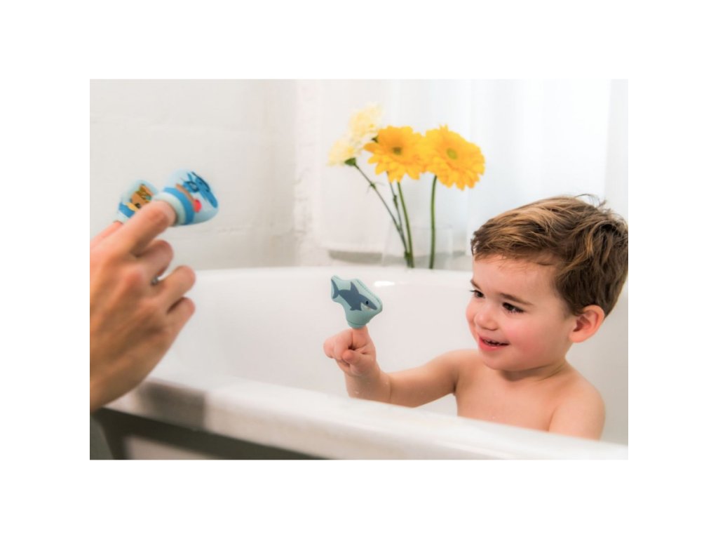 Spestrite deťom čas kúpeľa a doprajte im zažiť skvelé dobrodružstvá s 5 pirátskymi prstovými bábkami. Počas kúpeľa si deti umiestnia pirátske bábky na prsty a môžu vymýšľať dobrodružné pirátske príbehy. Piráti sa vydajú spoločne hľadať poklad. Ale obavy sú na mieste, lebo za rohom číha nebezpečenstvo. Dávajte si veľký pozor na žraloka.Neoprénové bábky sa vznášajú na hladine a vďaka materiálu rýchlo schnú. Originálny darček pre chlapcov aj dievčatá od 10 mesiacov.