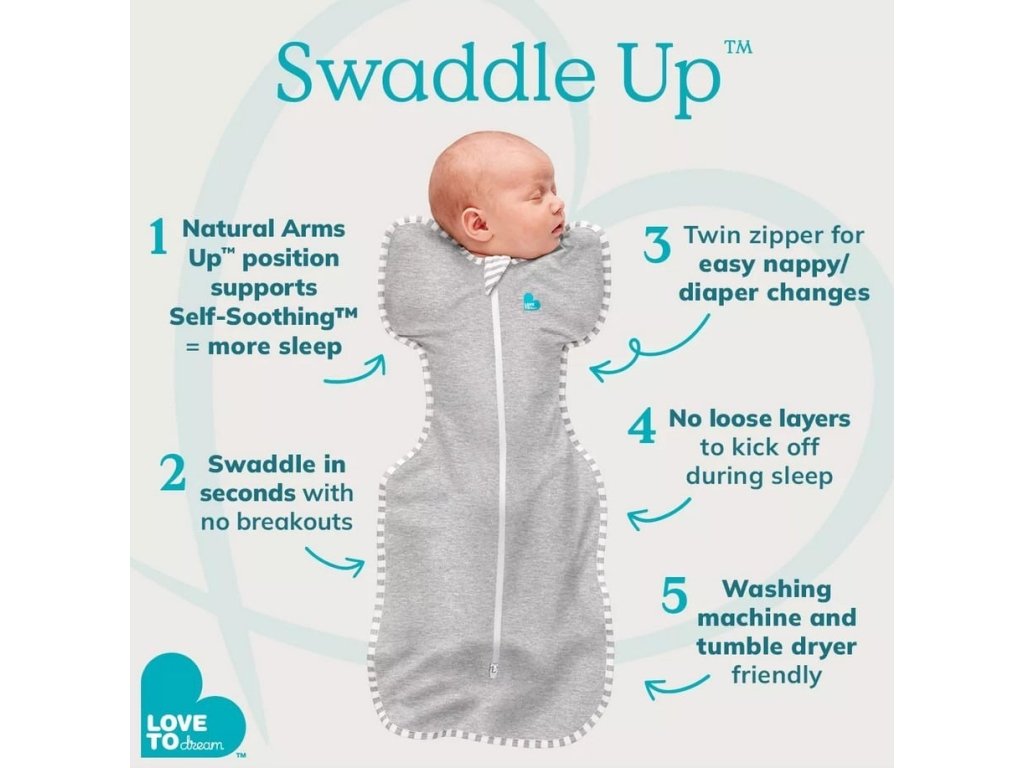 Love To Dream Swaddle UP s hodnotou 2.5 TOG je ideálnou voľbou pre chladnejšie mesiace alebo pre mierne chladné detské izby (16-20°C). Poskytne vášmu maličkému optimálne teplo a pohodlie počas spánku."