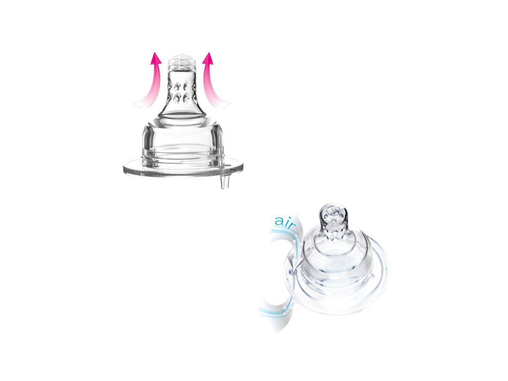 - Protikolikový cumlík - unikátny systém odvzdušňovania cumlíka minimalizuje možnosť vzniku detskej koliky.