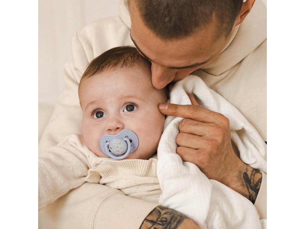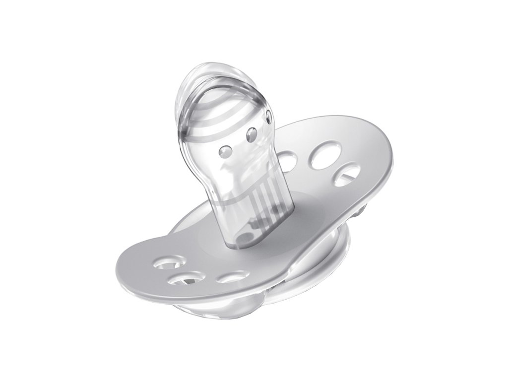 - Jemný silikón v cumlíku je pre bábätko neutrálnym materiálom, nevyvoláva alergické reakcie, je bez chuti a zápachu, čo je obzvlášť dôležité v tejto fáze, keď je dieťa citlivé na vonkajšie podnety.