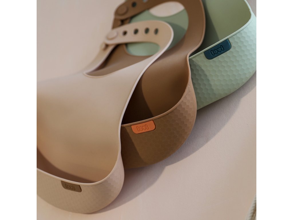 LOVI Silikónový podbradník s vreckom je veľkým pomocníkom pre rodičov - chráni pred nečistotami v čase, keď sa dieťa učí samostatne jesť. Je vyrobený z ľahkého, mäkkého a bezpečného silikónu. Pevné a hlboké vrecko zachytáva zvyšky jedla, pohodlne obopína bruško a zasahuje doširoka do bokov bábätka. Nastaviteľná spona a ergonomický tvar podbradníka, najmä jeho tvarovanej strany, zaisťujú voľnosť pohybu. Podbradník má originálny dizajn vďaka unikátnej štruktúre vrecka a tiež sa ľahko čistí a je vhodný do umývačky.