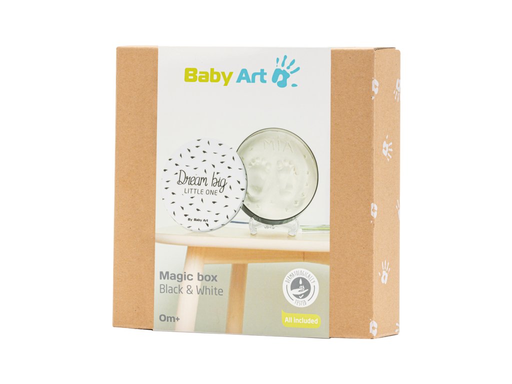Rámček s vekom a stojanom Baby Art Magic Box ponúka priestor na odtlačok ručičky alebo nožičky vášho bábätka. Vyrobte si krásnu dekoráciu, ktorá vám zároveň pomôže uchovať spomienky na krásne obdobie po narodení vášho dieťaťa.