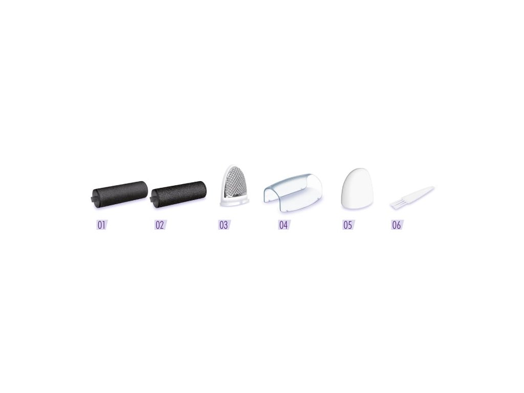 Na dosiahnutie najlepšieho efektu hladkých a mäkkých nôh používa MEDEL vymeniteľné valcové násady s hrubým a jemným zrnom. Rýchlosť otáčania kotúča možno nastaviť tak, aby vyhovovala individuálnym potrebám (úroveň 1 pomalá, úroveň 2 rýchlo).