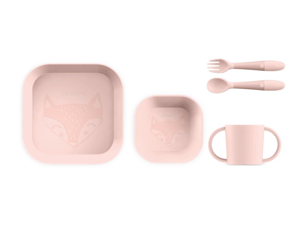 Miniland Dolce 5-dielny set na jedenie pre deti, štvorcový, ružový
