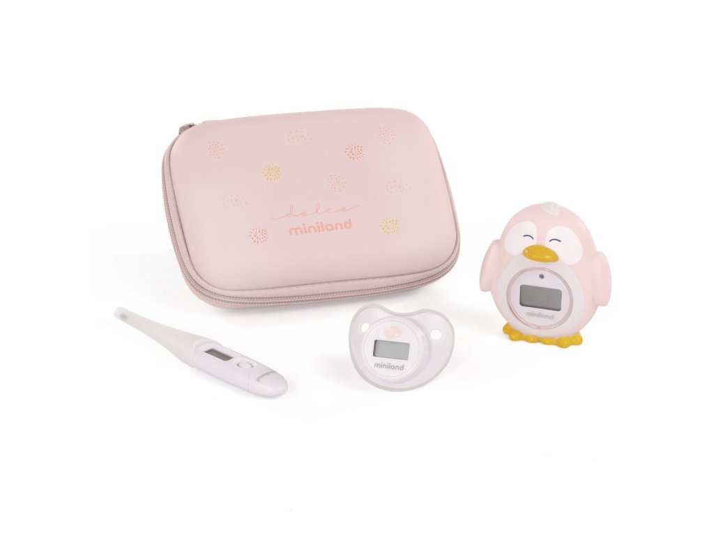 Miniland Dolce Sada 3 teplomerov, teplomer s flexi špičkou, do kúpeľa, cumlík, ružová