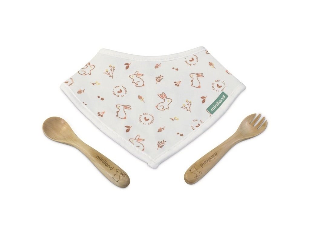 Miniland ECO-friendly Sada ekologických príborov s podbradníkom, Zajac