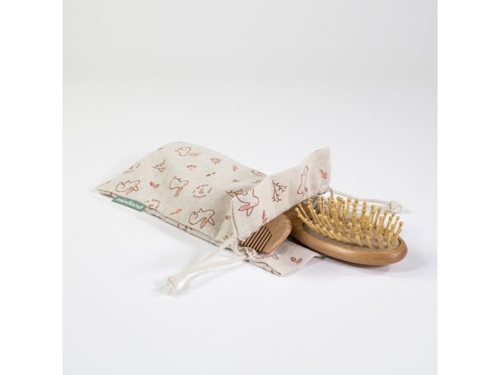 Celá súprava je vyrobená s dôrazom na udržateľnosť. Kefky a hrebeň sú vyrobené zo 100 % prírodného dreva, čo zaručuje ich odolnosť a dlhú životnosť. Drevené štetiny sú antistatické a nelámu vlasy, čo prispieva k zdraviu a kráse vlasov od útleho veku. Produkty rešpektujú životné prostredie a sú bezpečné pre detskú pokožku. Súčasťou setu je aj prenosná taška, ktorá je ušitá zo 100 % organickej bavlny, čo len podčiarkuje ekologický prístup.