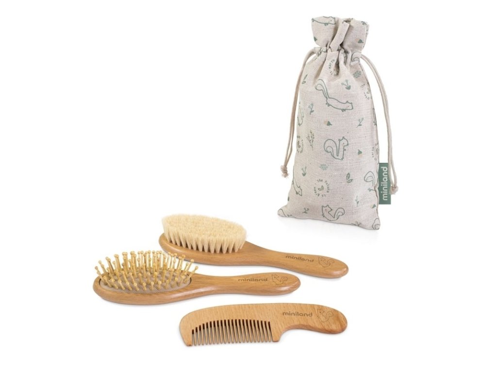 Miniland ECO-friendly Súprava na starostlivosť o dieťa (2 kefky, hrebeň, taška), Veverička