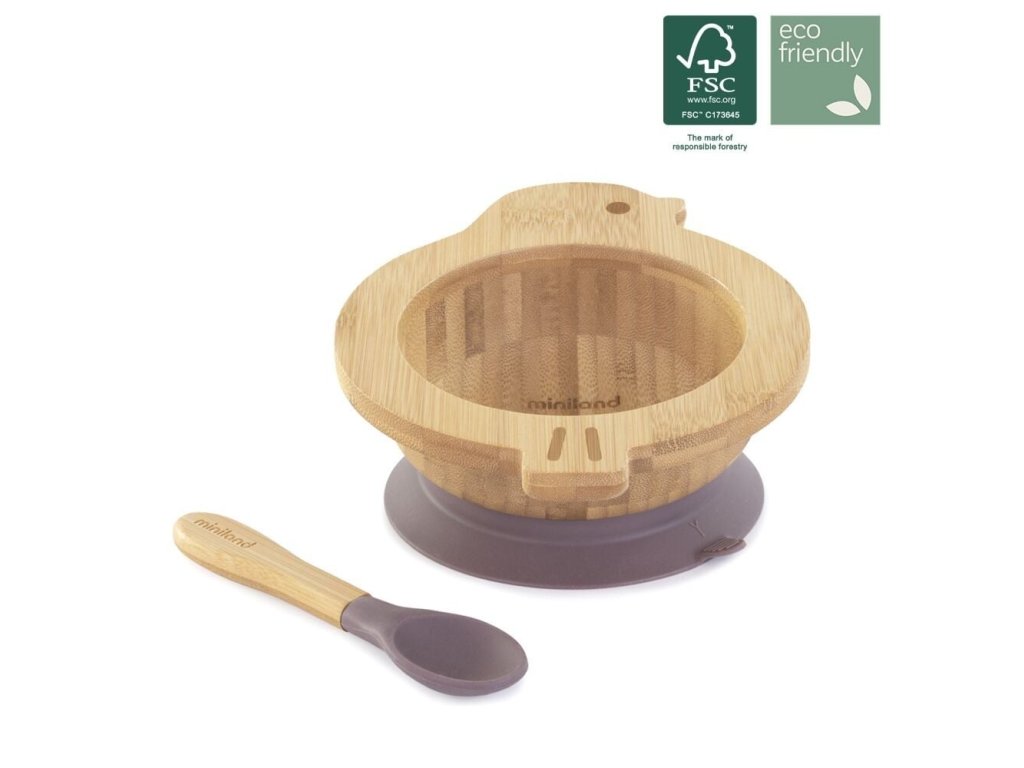 Miniland ECO-frienly Miska s lyžičkou z dreva Vtáčik