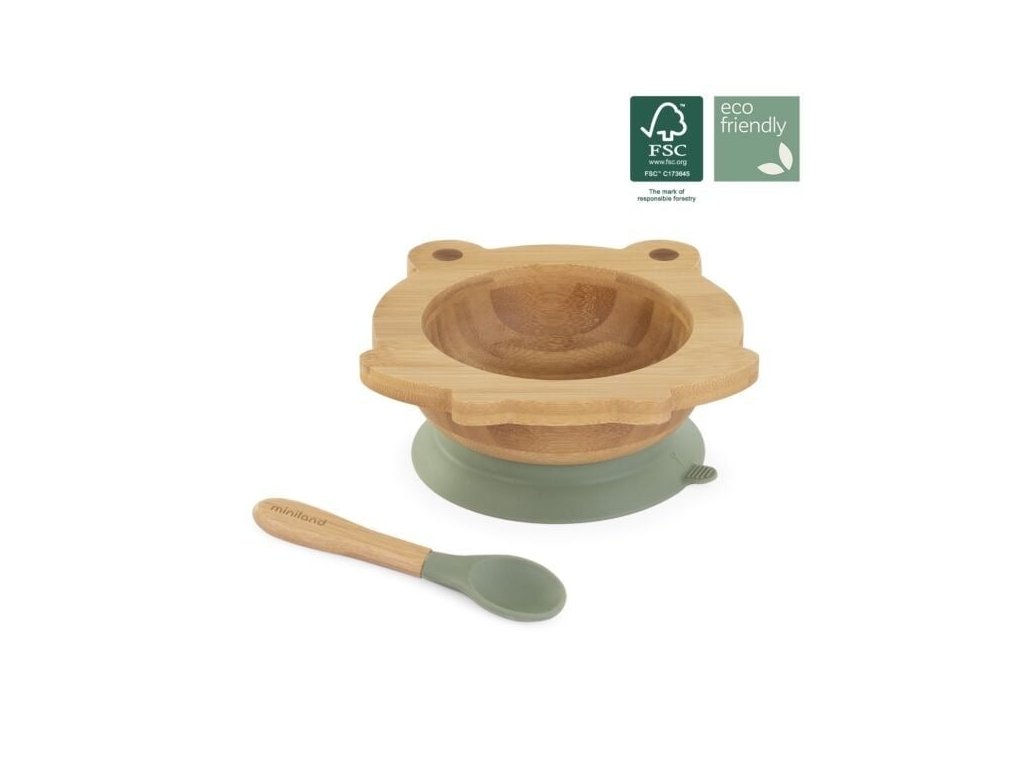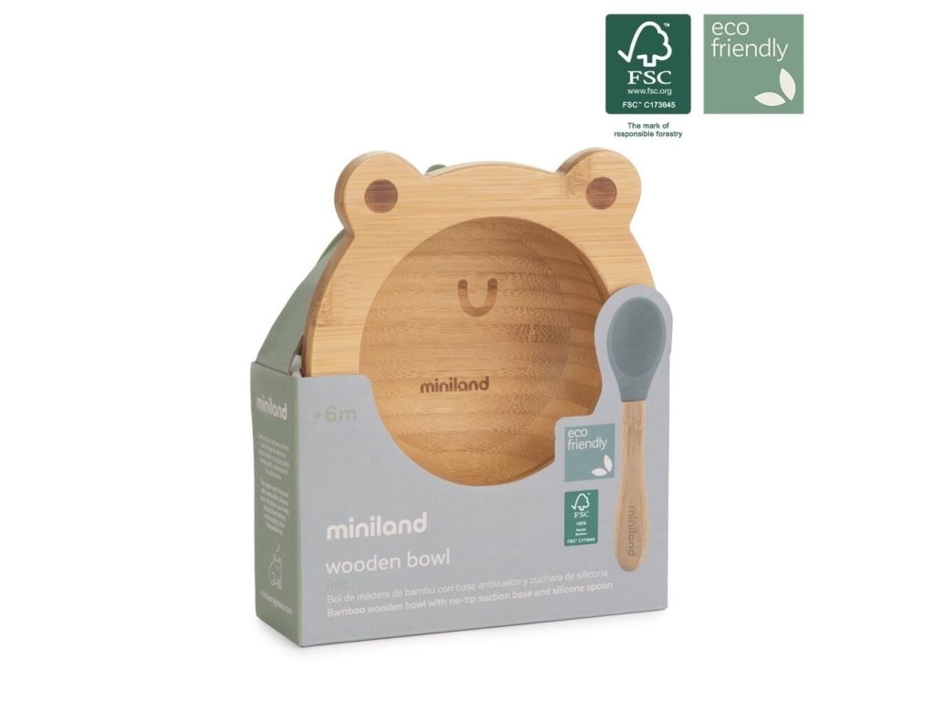 Miniland ECO-frienly Miska s lyžičkou z dreva, Žabka