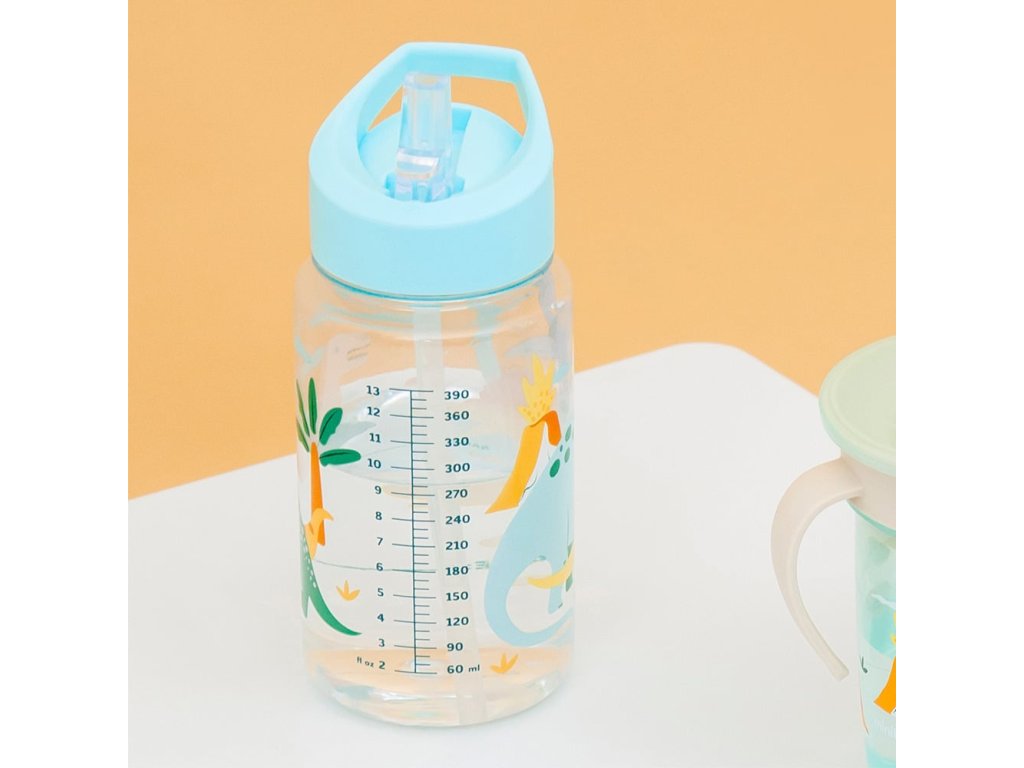 Fľaša je vybavená pevnou a pohodlnou slamkou, ktorá uľahčuje pitie. Vďaka úchytu na zavesenie ju môžete pripevniť na batoh alebo kočík, takže dieťa ju má vždy po ruke.
