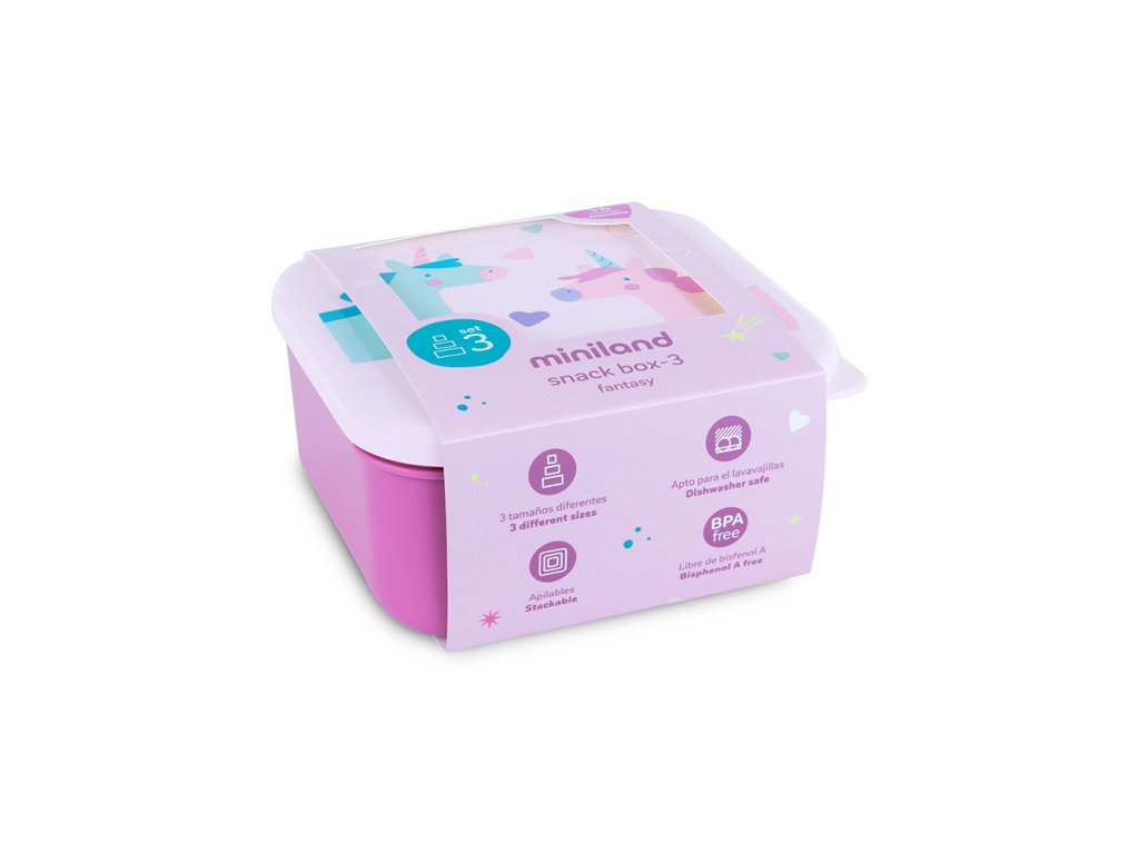 Sada 3 nádob na jedlo Miniland je ideálnym riešením na uchovávanie a prenášanie obedov či občerstvenia. Krabičky sú ergonomické, čo umožňuje ich praktické uskladnenie – môžete ich ukladať jednu do druhej, čím šetríte miesto v kuchynskej skrinke alebo v taške. Sú vyrobené z kvalitného materiálu, ktorý je úplne bez BPA, čím je zaručená bezpečnosť uchovávaných potravín.