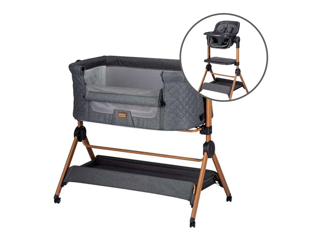 Pôvabná prídavná postieľka pre bábätko od zn. FreeON, ktorú možno v niekoľkých krokoch ľahko premeniť na vysokú stoličku. Tento neuveriteľne praktický produkt 2v1 bude vaším každodenným spoločníkom. Bočnicu je možné otvoriť alebo spustiť a pomocou priložených koliesok postieľku ľahko umiestniť vedľa vašej postele. Dá sa použiť aj ako samostatná postieľka s bočnicami nahor. Základňu postieľky je možné nastaviť do 3 rôznych výšok. V spodnej časti je praktická polica na uloženie základnej výbavy. Postieľku je možné premeniť na vysokú stoličku, keď už môže vaše dieťatko sedieť samostatne. Vysoká stolička je dodávaná so špeciálnym vankúšom pre pohodlie pri kŕmení a má odnímateľný podnos, ktorý sa ľahko čistí. Bezpečnosť a pohodlie zaisťuje 5-bodový bezpečnostný pás a opierka nôh. Polička pod sedadlom je veľmi praktická na uloženie príslušenstva.