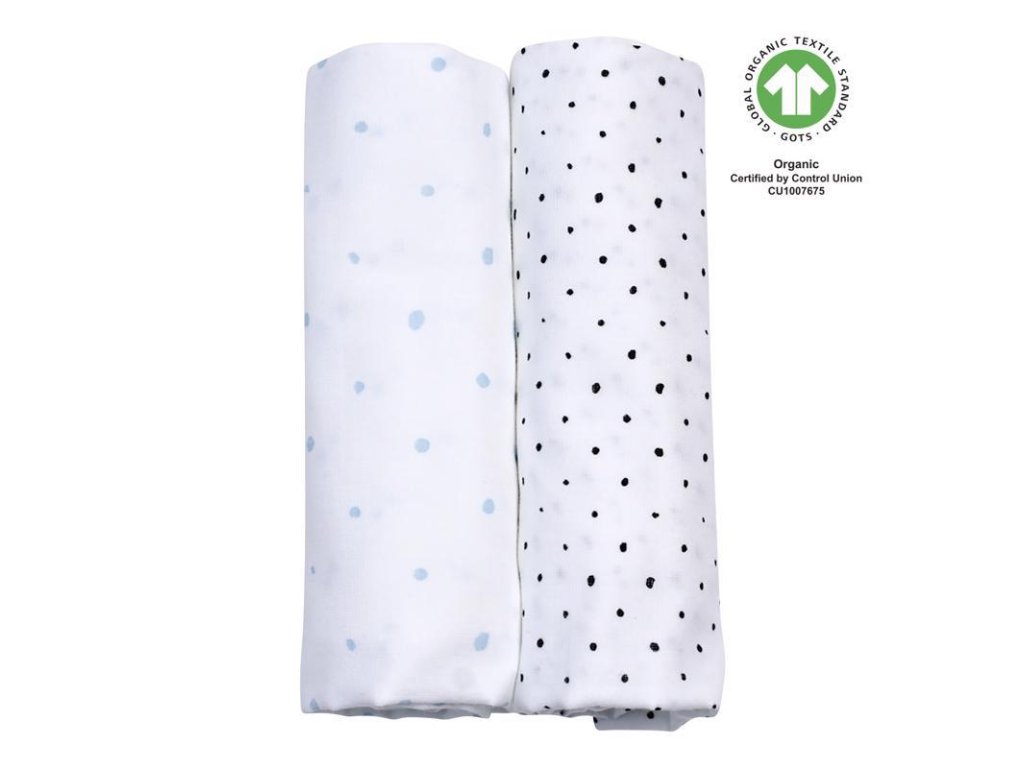 MOTHERHOOD Plienka mušelínová BIO 2ks Blue and Black Dots 85x85cm