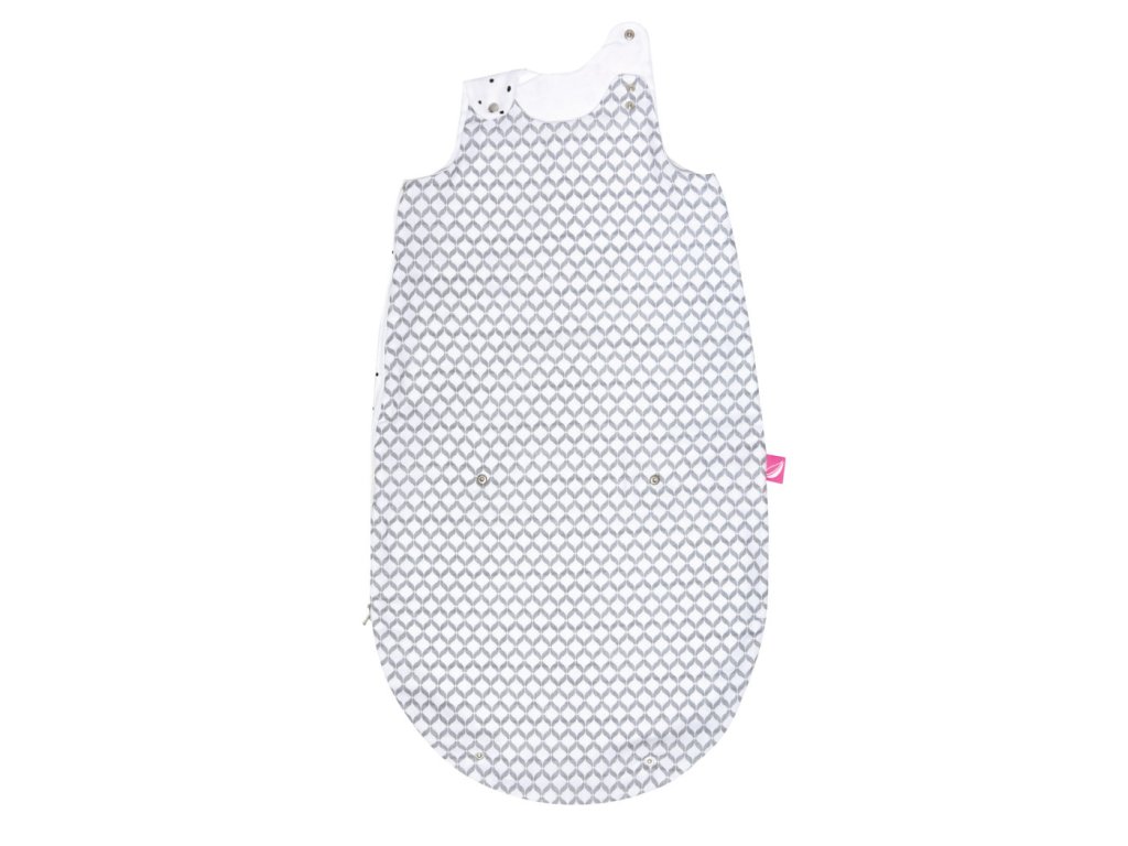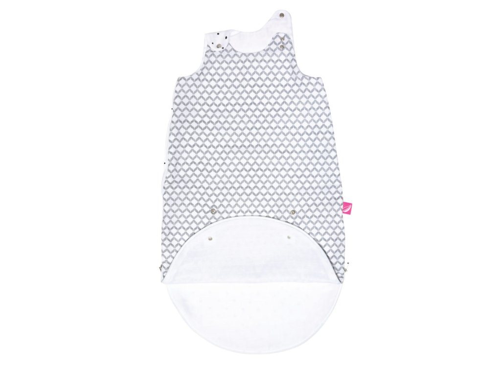 Rastúci spací vak: Spací vak 2v1 poskytuje možnosť nastavenia veľkosti na 2 rozmery: 3-6 mesiacov pri zapnutom vaku, po odopnutí 6-18 mesiacov. Navyše v podpazuší sú umiestnené cvočky, ktoré zmenšujú otvor pre ručičky (u detí do 4,5 kg).