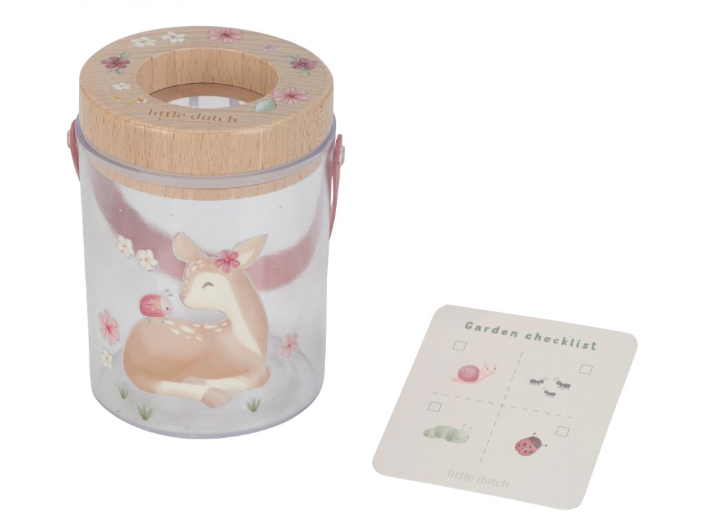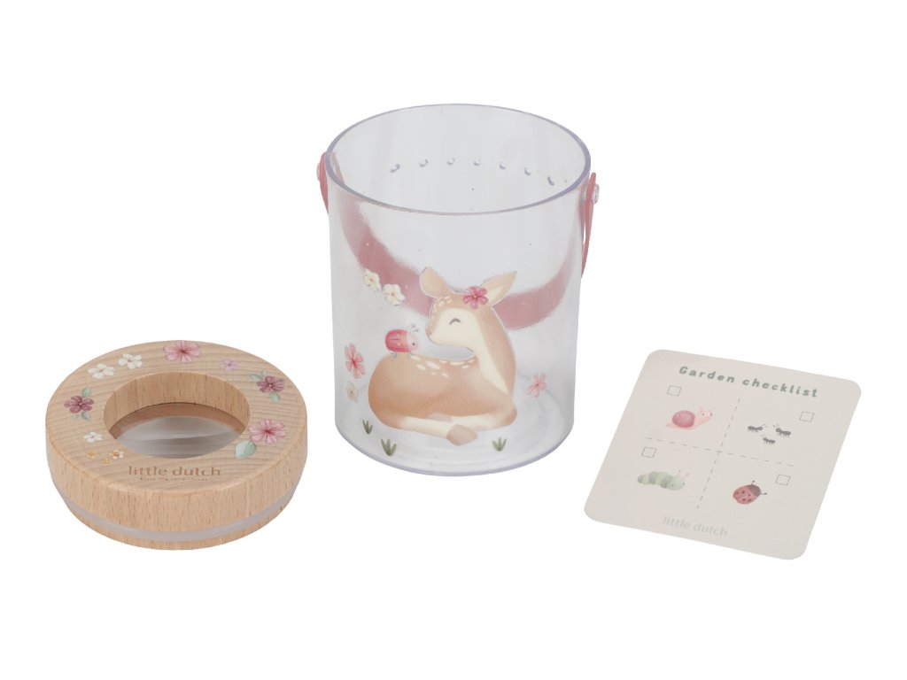 Nádoba s krásnou potlačou je súčasťou dizajnovej kolekcie hračiek a doplnkov Little Dutch Fairy Garden, inšpirovanej životom na záhrade.