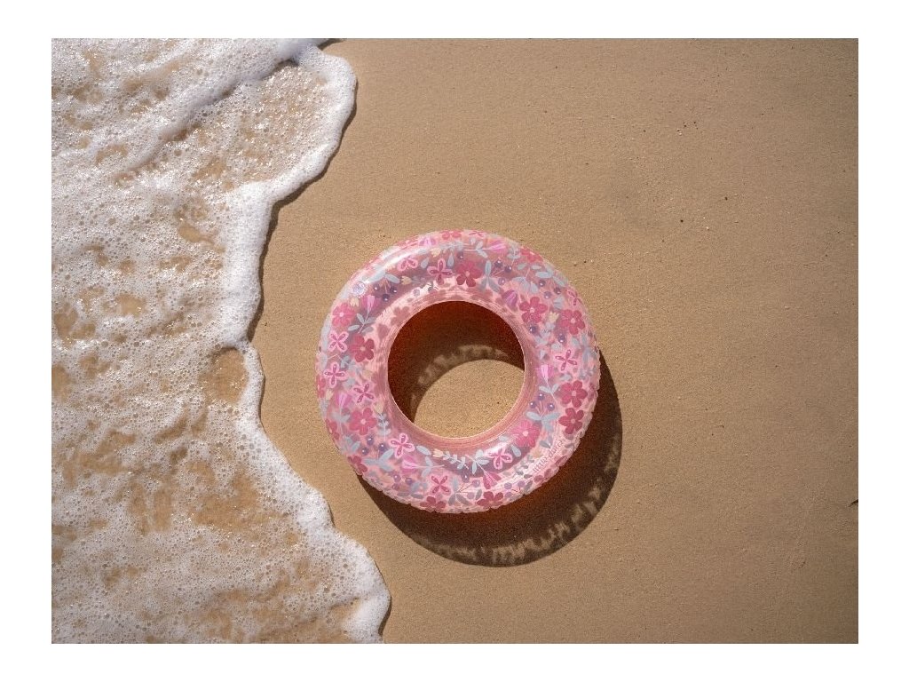Nafukovací kruh na plávanie s krásnou kvetinovou potlačou je skvelým doplnkom pre letné vodné dobrodužstvo.