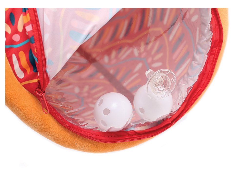 Originálna hračka v tvare valca s množstvom aktivít na skúmanie zabaví dieťa a súčasne podnecuje rozvoj jeho zmyslov a motorických zručností. Vnútri skrýva cinkajúce loptičky, textilný poťah ponúka rôznorodé textúry, bezpečné zrkadlo aj hrkálku.