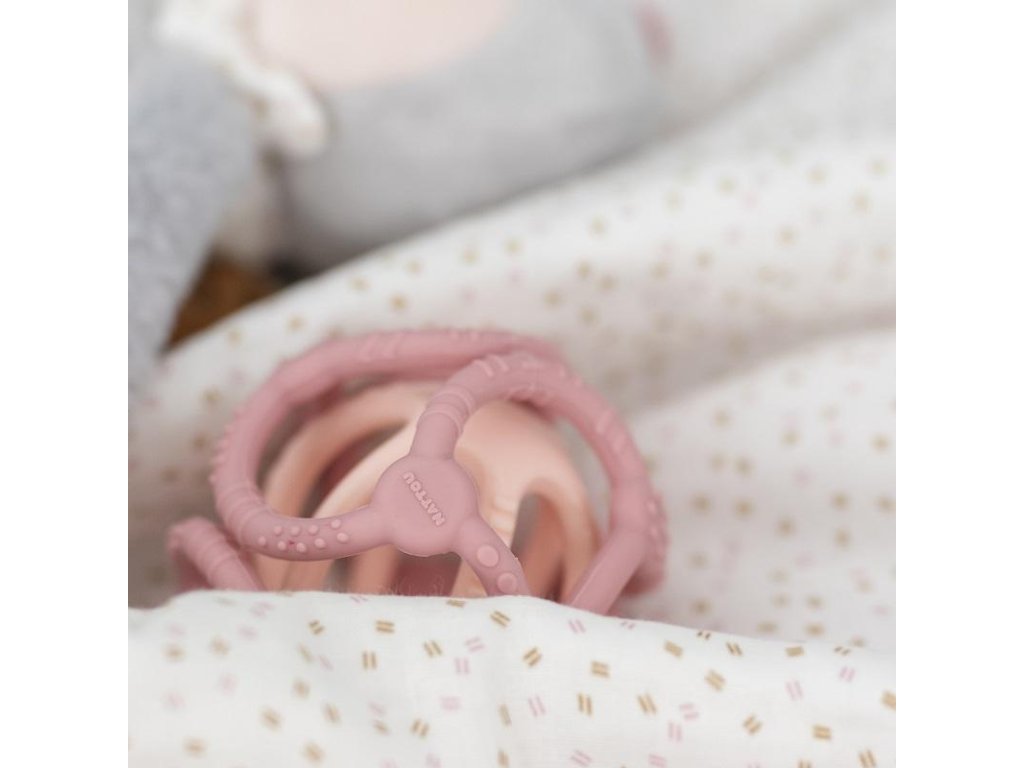NATTOU Hryzačka silikónová lopta 2v1 bez BPA 10 cm ružová
