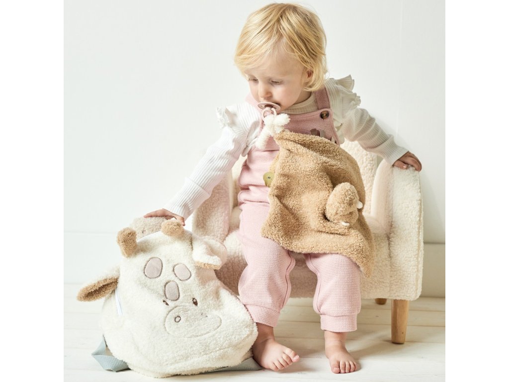 Mäkučká dečka s milým motívom ponúka množstvo úchopových možností, ktoré podporujú rozvoj zmyslov a jemnej motoriky. Dieťatko môže pohodlne chytať hlavičku zvieratka alebo zaujímavé visačky po stranách. Praktické pútko umožňuje pripevniť cumlík, aby bol vždy po ruke.