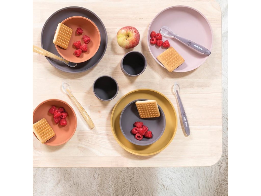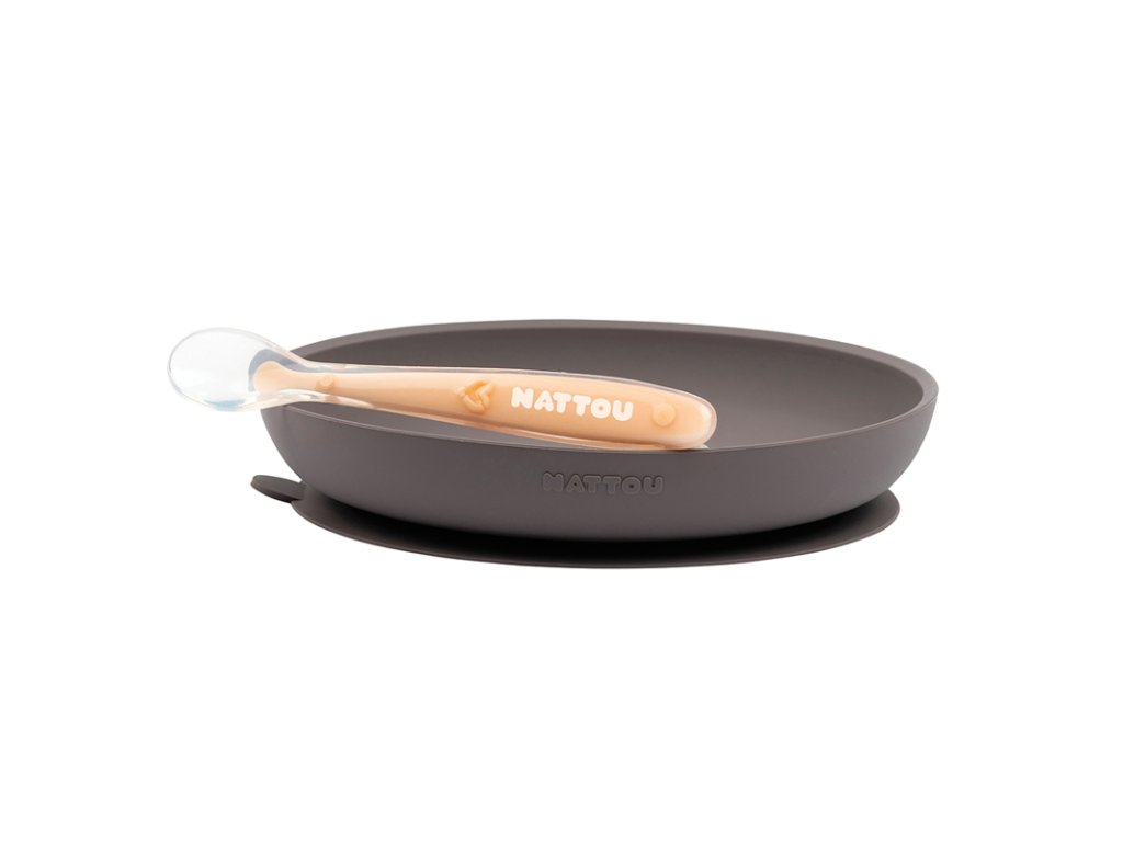 Dvojdielny jedálenský set od Nattou z mäkkého silikónu je veľmi praktický, ľahko uchopiteľný a protišmykový. Set obsahuje tanierik s prísavkou a lyžičku. Zaoblené vnútorné hrany tanierika uľahčujú naberanie potravín detičkám a ich rodičom.