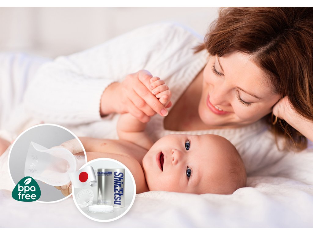 - Prsné štíty z japonského silikónu – príjemné na dotyk, znižujú nepohodlie a uľahčujú odsávanie