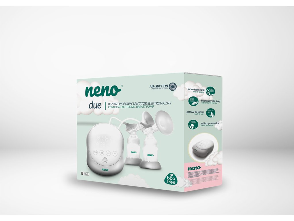 Neno Due je bezkáblová dvojitá elektronická odsávačka materského mlieka navrhnutá pre pohodlie a hygienu mamičiek. Umožňuje odsávanie z oboch prsníkov naraz, čo výrazne skracuje čas odsávania a zjednodušuje celý proces.
