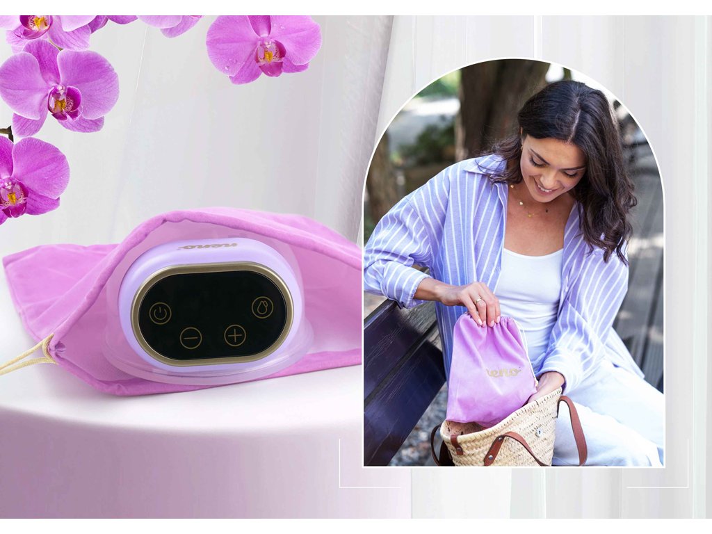 Neno Sole je inovatívna bezdrôtová handsfree odsávačka materského mlieka vďaka ktorej toho zvládnete naozaj veľa. Jej ľahká a malá konštrukcia sa zmestí bez námahy do košíku podprsenky na dojčenie a umožní Vám tak mať voľné ruky. Prenosná odsávačka pastelovej farby je úplne bezdrôtová, má prehľadný dotykový ovládací panel a veľký objem, kam sa zmestí až 210 ml mlieka. Odsávačka mlieka funguje na základe troch fáz s 8 úrovňami nastavenia. Má anatomický prsný štít v tvare prsníka, ktorý možno zmenšiť z 24 mm na 20 mm.