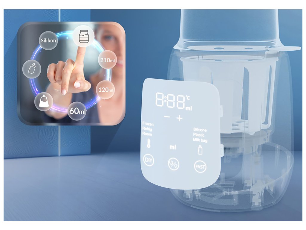 - Smart Pro systém – automaticky nastaví optimálny čas a teplotu podľa objemu, vstupnej teploty a materiálu nádoby (plast, silikón, vrecko na mlieko).