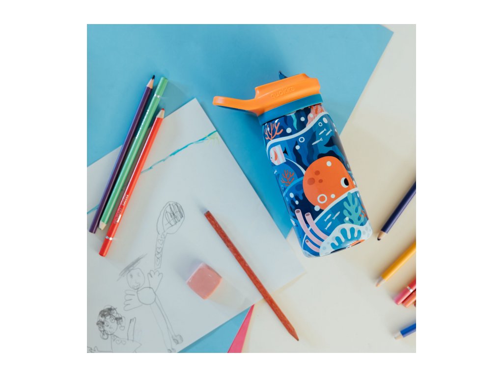 Detská termofľaša Quokka Pop Kids z vysoko kvalitnej dvojstennej ocele udrží nápoj aj počas horúcich letných dní príjemne studený. Fľaša s náustkom a slamkou umožňuje ľahké pitie bez nutnosti nakláňania fľaše. Zaklapávacií náustok bráni vyliatiu obsahu fľaše. Široké hrdlo umožňuje vloženie kociek ľadu a zároveň sa vďaka nemu fľaša ľahko čistí. Údržbu uľahčuje aj odnímateľná široká slamka. Vďaka držadlu sa fľaša ľahko prenáša.