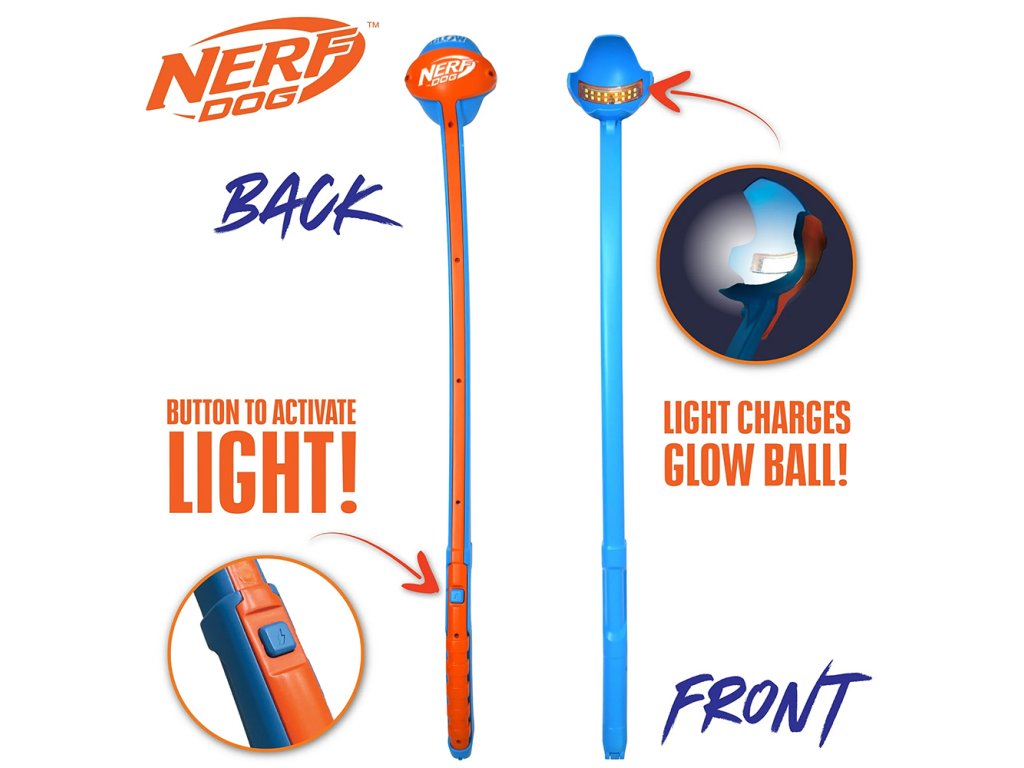 Vrhač loptičiek Nerf Dog Air Strike je navrhnutý pre dynamickú hru s aportom medzi majiteľom a psom - hádzanie, chytanie loptičky a interaktívnu zábavu. Vrhač loptičiek je vhodný, pokiaľ chcete predĺžiť dobu hrania až do večera alebo v prostredí so zníženou viditeľnosťou. Obsahuje vstavané LED osvetlenie, ktoré umožňuje loptičke alebo hračke „rozsvietiť sa“. Vďaka tomu Váš pes hračku uvidí za každej situácie.