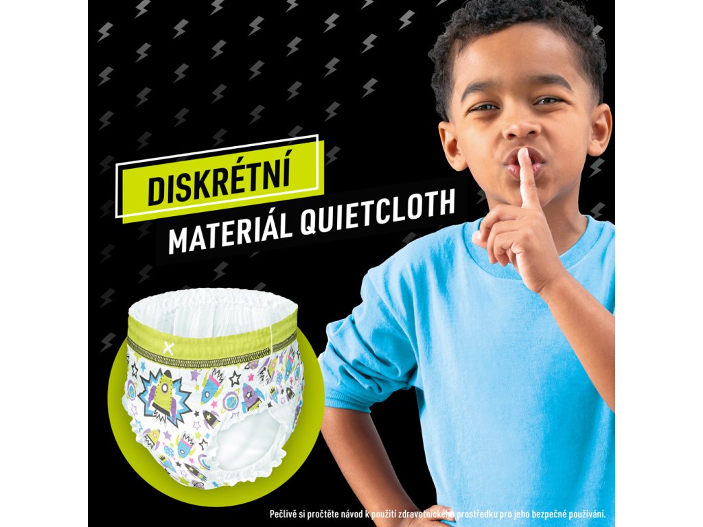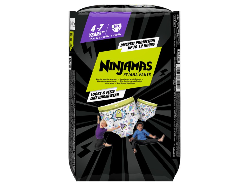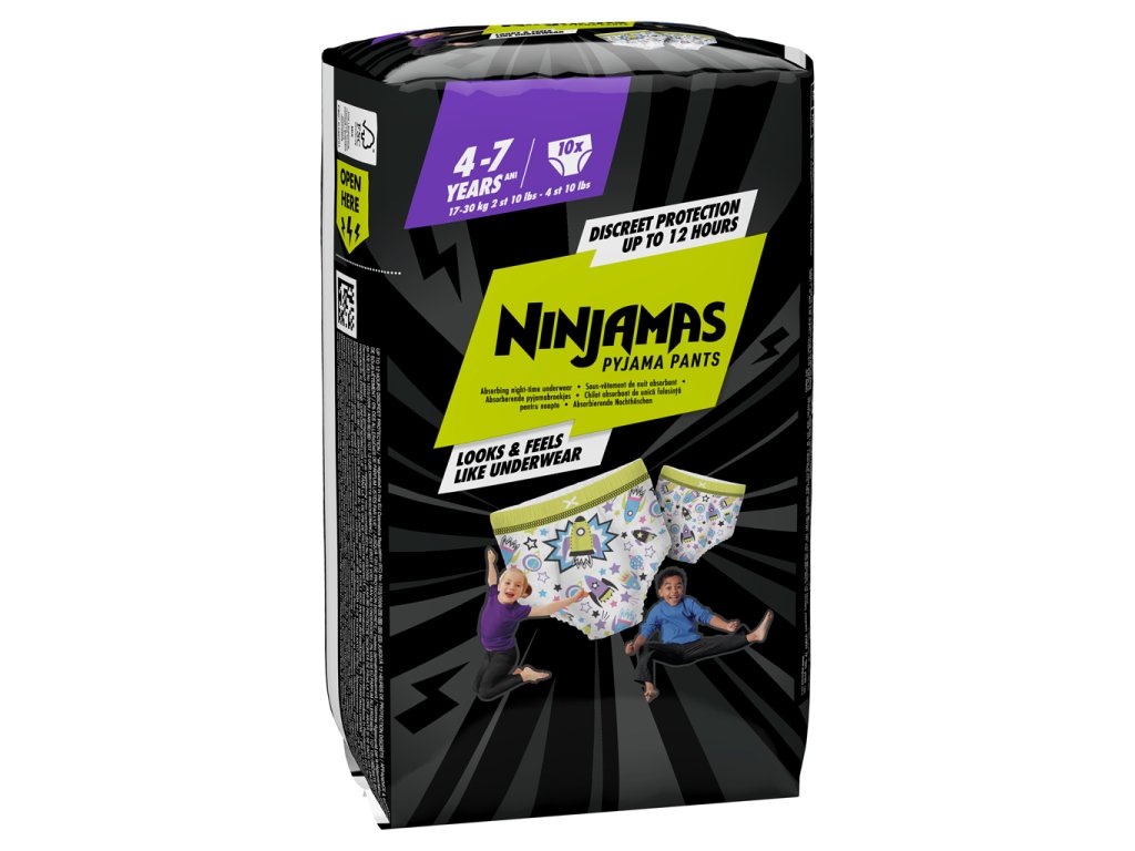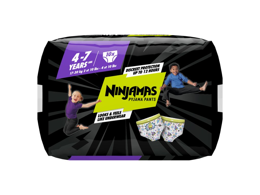 Popasujte sa s nočnými nehodami a zobúdzajte sa plní sebavedomia vďaka ochrane pred pretečením počas celej noci. Technológia okamžitej absorpcie nohavičiek Ninjamas ihneď absorbuje vlhkosť a poskytuje takú účinnú ochranu, akú ste ešte nevideli. Majú 360° pás FormFit, ktorý sa prispôsobí obvodu pásu vášho dieťaťa, takže sadnú rovnako diskrétne a pohodlne ako spodná bielizeň. Deti sa tak môžu každý deň zobúdzať so skvelým pocitom.