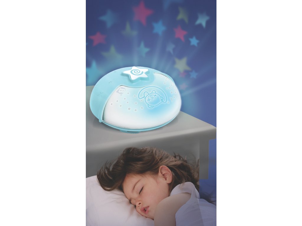Nočná lampička s hudbou a svetelným projektorom pre pokojné zaspávanie vášho dieťaťa. Lampička premieta na stenu či strop hviezdičky a jemne tak osvieti detskú izbu.