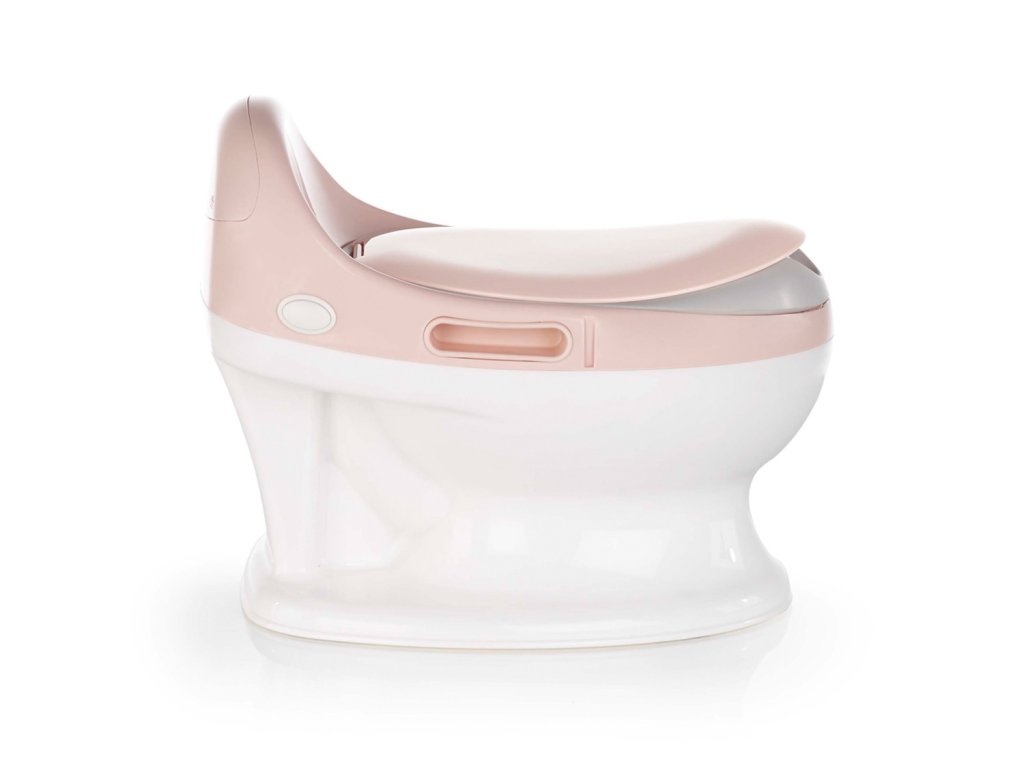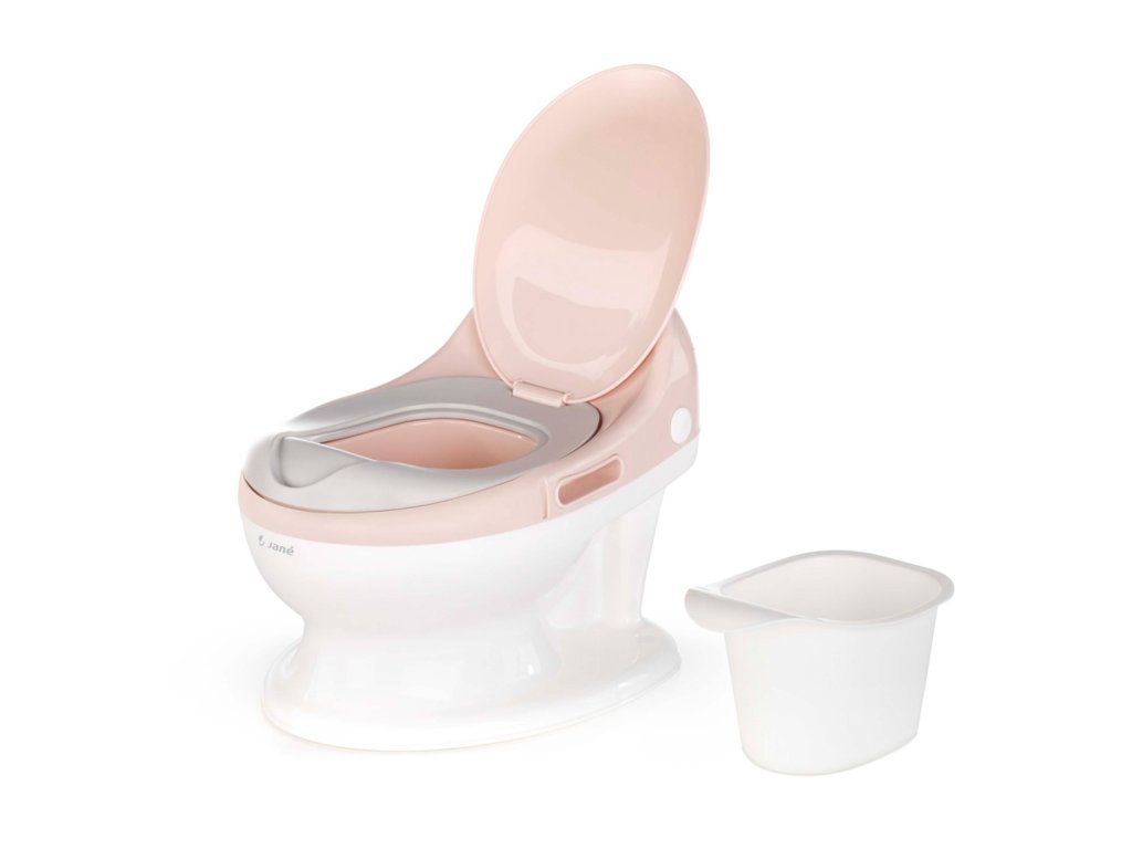 Nočník Jané so zvukom je skvelý pomocník pri odplienkovaní, keď deti často potrebujú viac istoty a motivácie. Má realistický dizajn podobný skutočnej toalete, ale je veľkostne prispôsobený deťom, takže sa na ňom cíti pohodlne a zároveň „dospelejšie“. Po použití môže dieťa stlačiť tlačidlo a začuje spláchnutie, čo z učenia robí zábavnejší a prirodzenejší zážitok. Pre stabilitu slúžia protišmykové pásky na spodnej časti, hygienu uľahčuje odnímateľná nádoba a ochrana proti vystreknutiu tekutiny. Sedátko je vyrobené z hladkej gumy na príjemné sedenie.