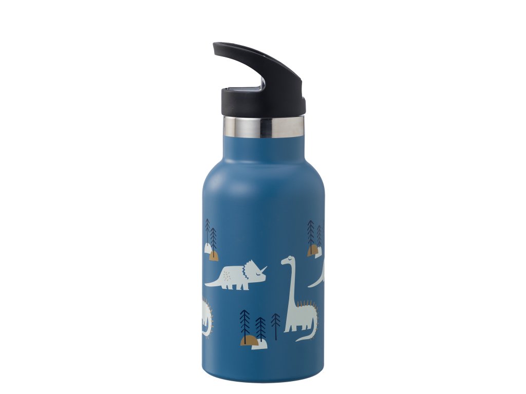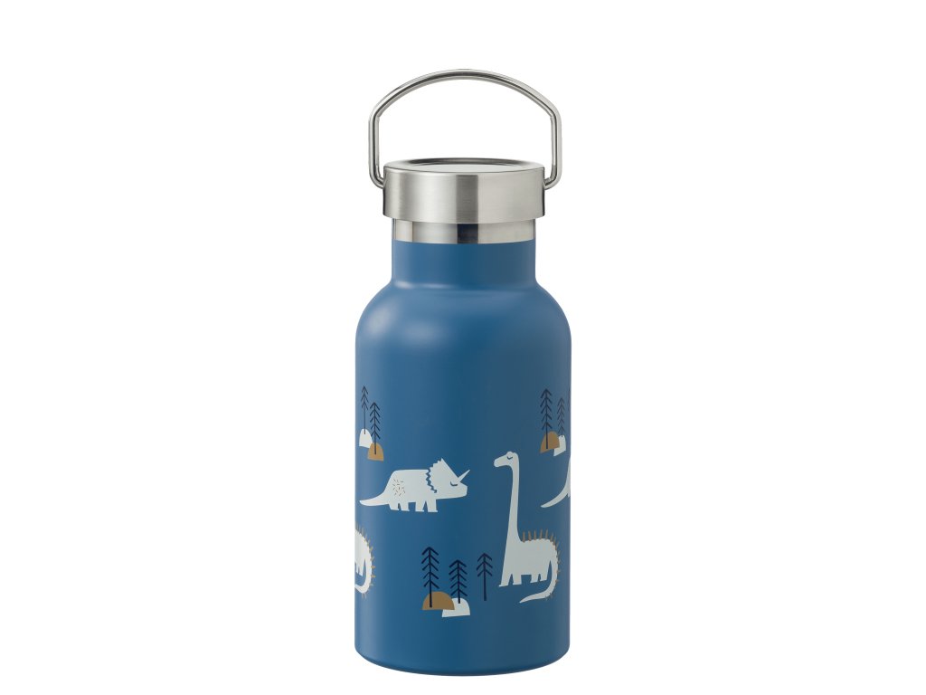 Ekologická nerezová termofľaša s motívom dinosaurov v modrej farbe.