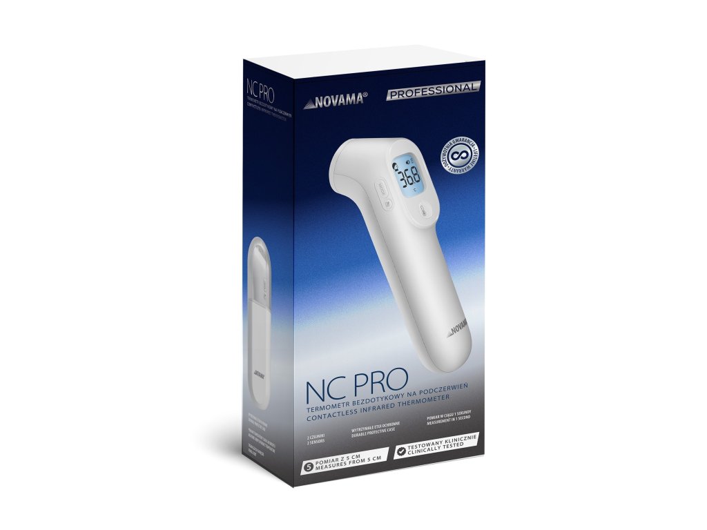 NOVAMA NC PRO je profesionálny, bezdotykový teplomer, ktorý v sebe spája špičkovú technológiu a maximálny komfort. Vďaka unikátnemu detektoru vzdialenosti a klinickej validácii (ISO normy) poskytuje garantovanú presnosť merania za 1 sekundu. Multifunkčnosť, tichý režim pre nočné meranie a doživotná záruka Door-to-Door robia z NC PRO ideálnu, bezpečnú a spoľahlivú investíciu do zdravia celej rodiny.