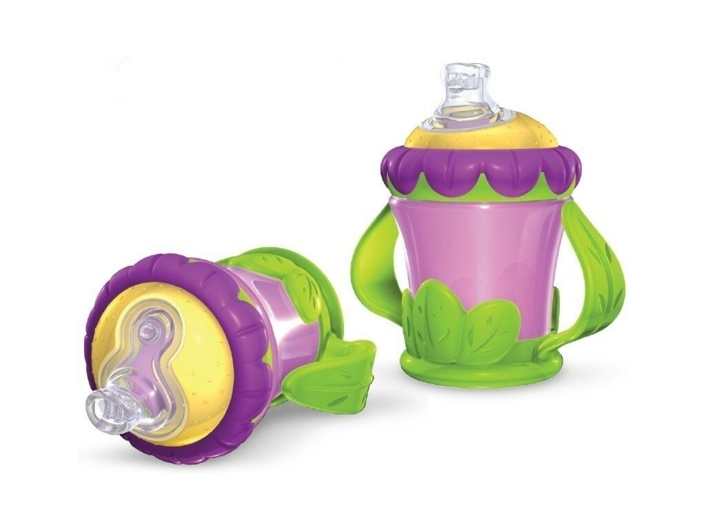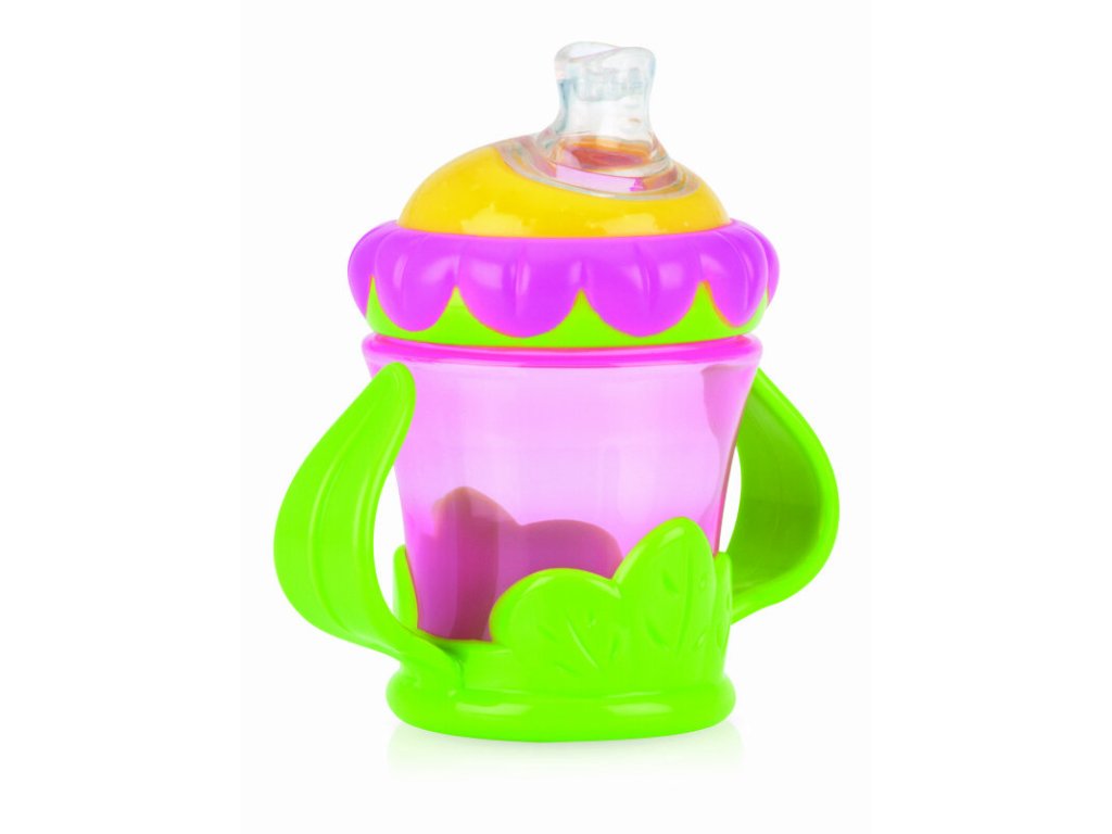 Nuby Netečúci náučný pohárik s úchytkami, kvet